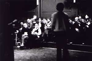Na de discussies konden beide groepen met elkaar de resultaten bespreken. Heldere conclusies waren er niet, wel een inventaris van gebruikte terminologie. De vorm van het Socratisch gesprek werd door sommigen wat schools gevonden, maar dwong de deelnemers wel om bekend gewaande begrippen te definieren. De deelnemers waren nog niet uitgepraat over acteren. Bij de borrel na afloop vlogen termen als 'fusiontheater', 'transformatie' en 'performativiteit' ons om de oren. |